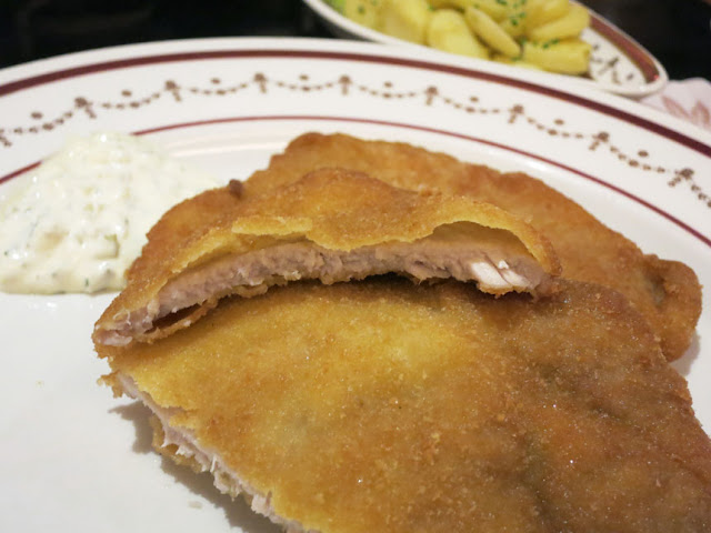 Breaded pork escalopes with warm potato salad: 8.5分, 主菜方面, 這客炸豬扒感覺上很德國式, 就像每年在科隆會場吃到的豬扒一般, 但不同的是, 豬扒皮是相當薄身, 很香脆, 加上檸檬汁, 就起了很好的提味作用. 另外跟上的是暖薯仔沙律, 簡單而美味.
