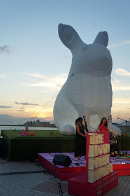 是晚我們一家三口就前來開幕典禮, 看看這五隻巨型月兔. 建議大家如我們一般, 黃昏的時候來到, 先看日景, 再看夜景.